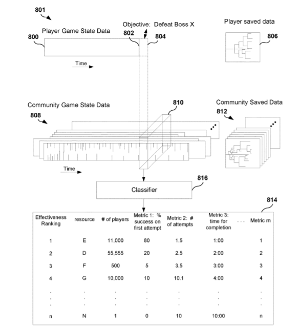 Решение от Sony также базируется на алгоритмах машинного обучения, который предназначен для классификации и анализе игровой статистики, накапливаемой игроками по всему миру, в целях подбора предложений, которые могут быть предложены игроку, например, при возникновении трудностей в какой-либо части игры. Как показано на иллюстрации ниже, модуль машинного обучения на базе нейронной сети анализирует сохраненную статистику в конкретной части игрового процесса и выбирает наиболее часто используемый внутриигровой предмет, применяемый игроками.