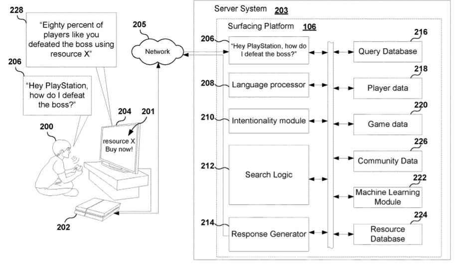Новая патентная заявка Sony раскрывает систему, которая позволяет игрокам покупать внутриигровые предметы с помощью голосового помощника. Предполагается, что данная функция может найти свое применение в новой игровой приставке PS5. Суть решения заключается в получении от игрока голосовых команд, которые могут направлены на запрос дополнительных предметов, обновлений и т.п., в целях помощи в прохождении игры.